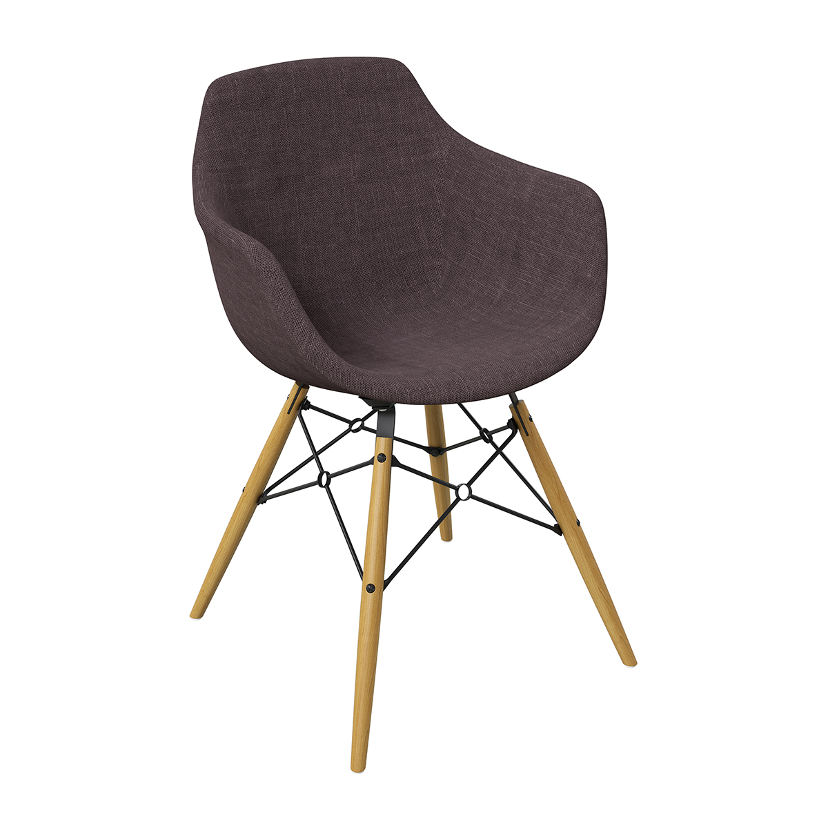 : Pieds en bois et métal, coque en polypropylène recouverte de tissu