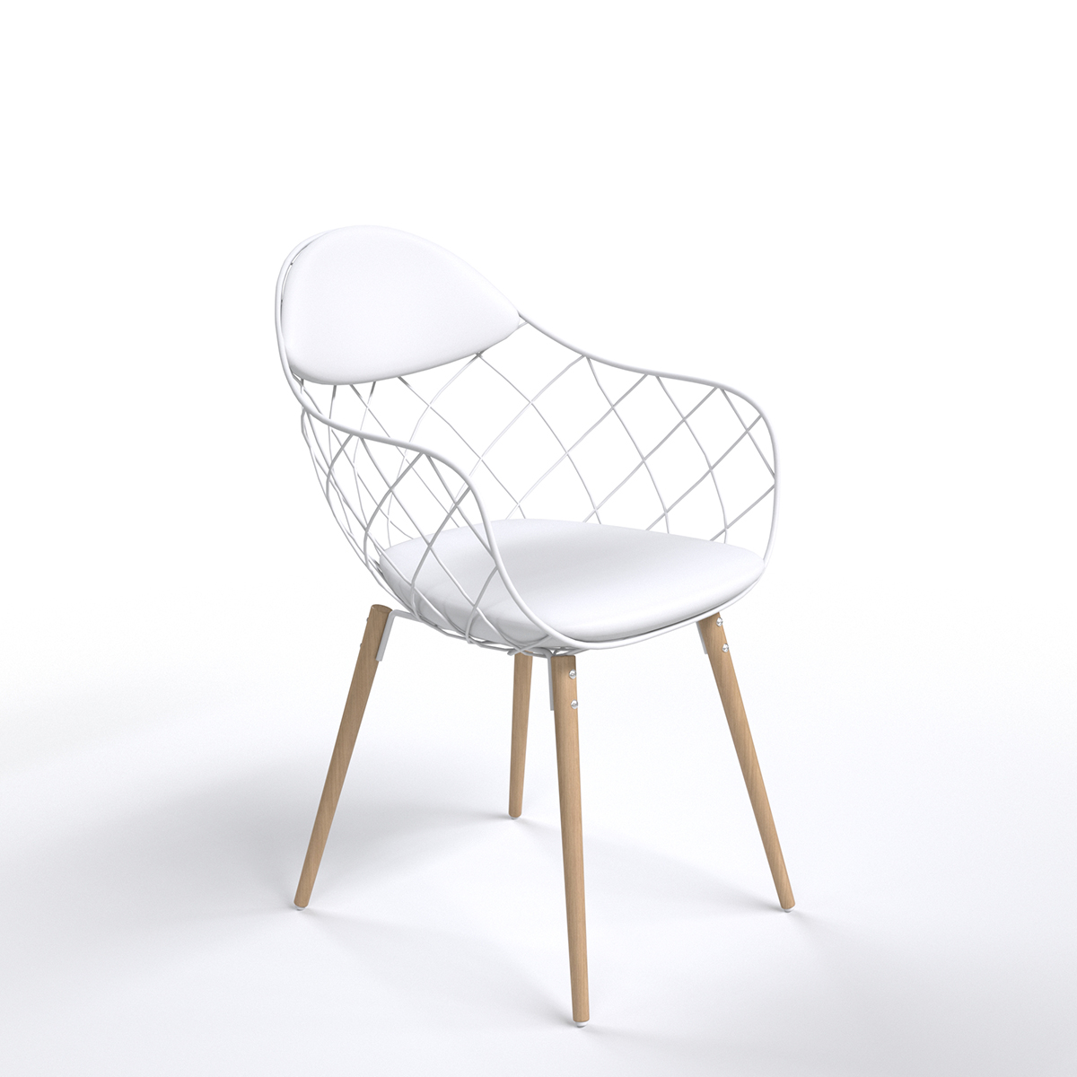 Dossier et assise rembourrée en velours blanc, structure et accoudoirs en métal et pieds en bois