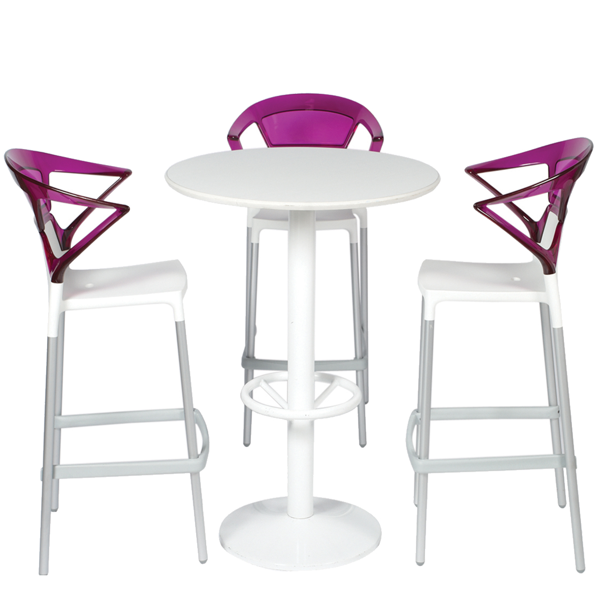 WHITE/VIOLET Composition: 1 high table and 3 high stools
